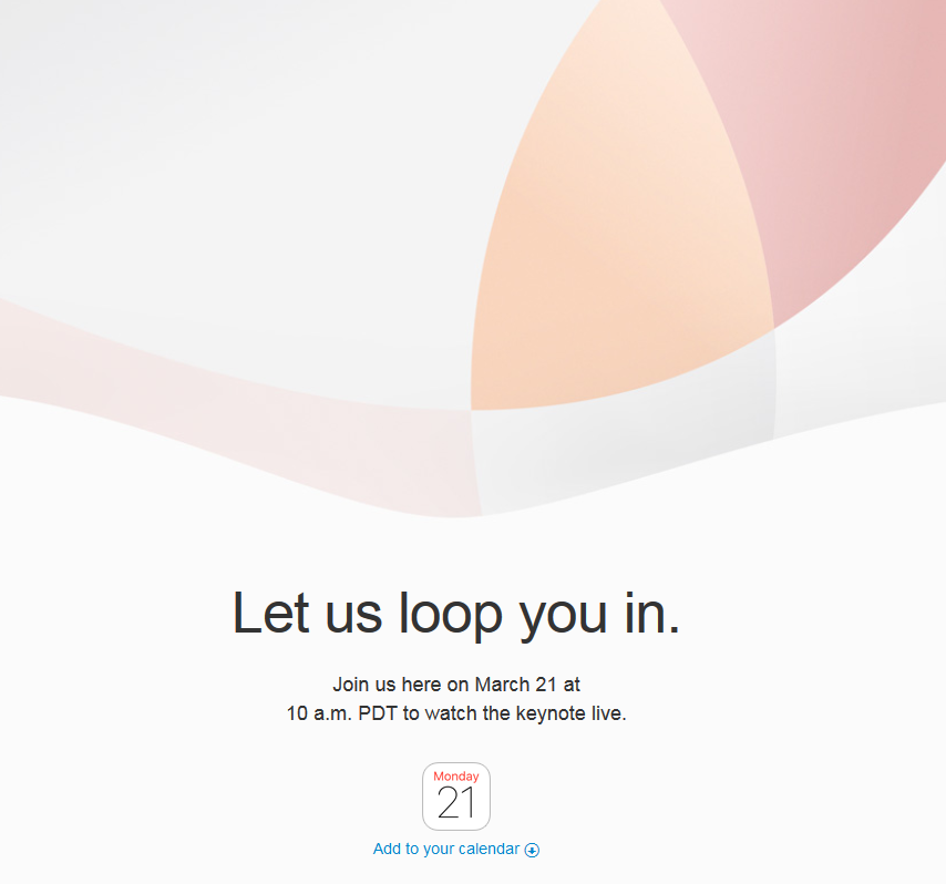 發布日期:2016-03-12 關鍵詞:新iphone或發布!蘋果發布會時間確定:3月22日凌晨 已有 5727 人瀏覽